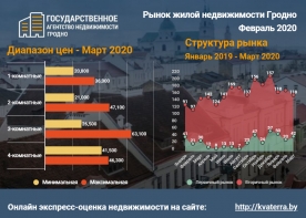Средние цены на квартиры в Гродно в настоящий момент вернулись к значениям 6-ти месячной давности. Продолжавшийся в предшествующем периоде в течение второго полугодия 2019 года рост рынка, приостановлен под воздействием совокупности негативных внешних факторов, связанных с неблагоприятным влиянием эпидемиологической ситуации.