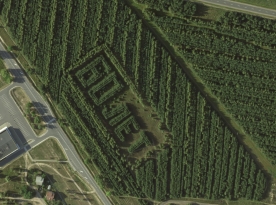 Необычную достопримечательность – фото с надписью из деревьев, высаженных в честь 60-летия Октябрьской революции, можно увидеть на Георесурсе данных дистанционного зондирования Земли (ДЗЗ)