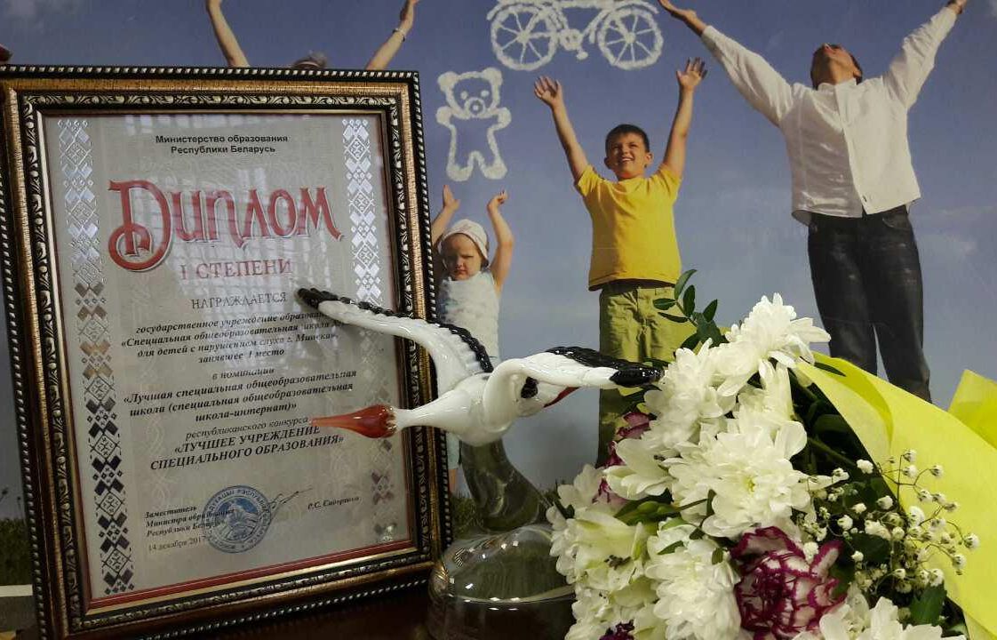 На днях специальная общеобразовательная школа № 14 города Минска для детей с нарушением слуха была удостоена Диплома 1 степени в номинации «Лучшая специальная общеобразовательная школа (специальная общеобразовательная школа-интернат)» ІІ Республиканского конкурса «Лучшее учреждение специального образования», проводимого в целях совершенствования системы специального образования, повышения качества и доступности образования для лиц с особенностями психофизического развития, развития творческих инициатив педагогических работников, а также выявления, обобщения и распространения лучшего опыта работы учреждений специального образования.