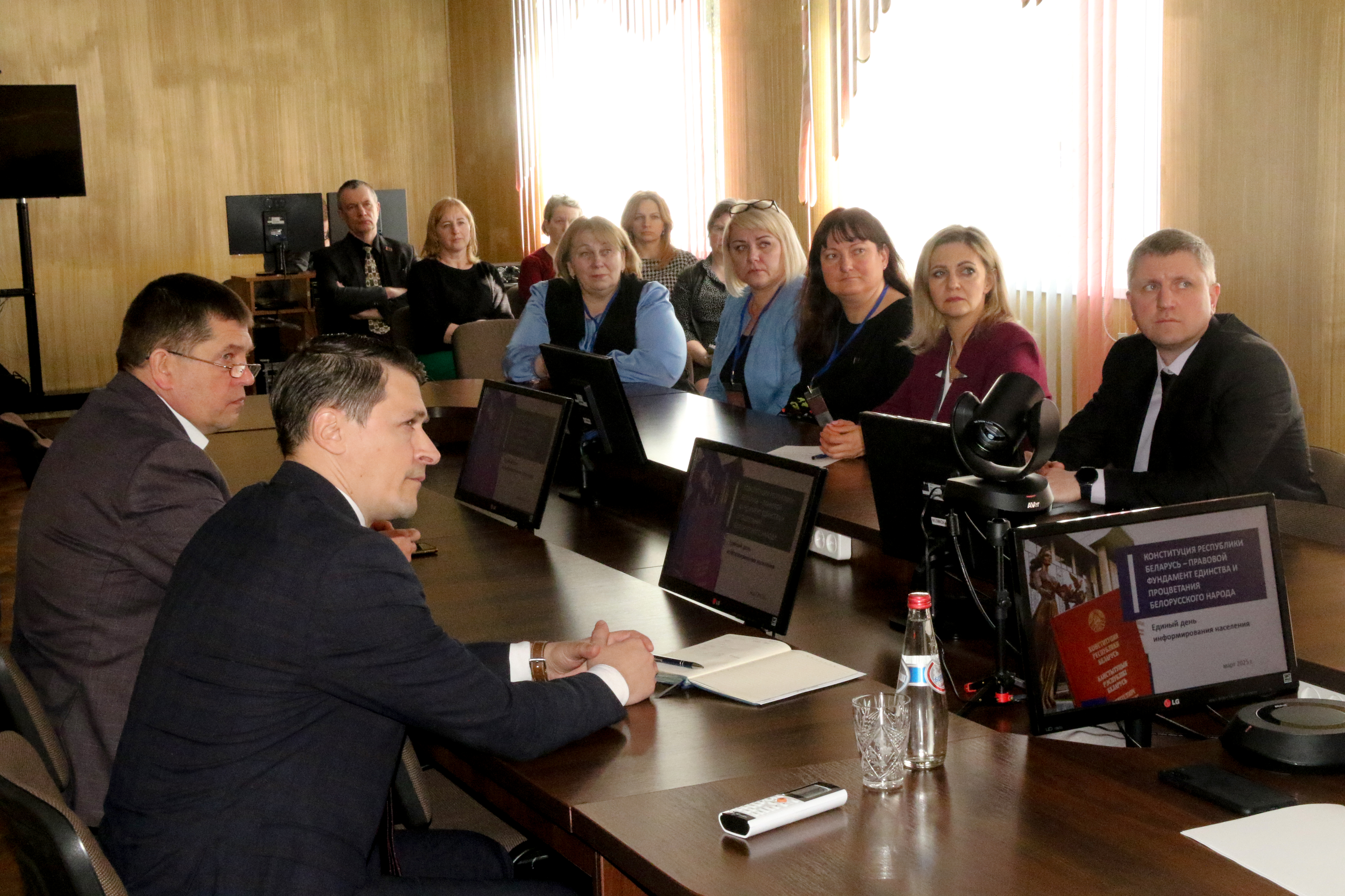 Председатель Госкомимущества Дмитрий Матусевич с рабочим визитом посетил Гродненскую область, где провел встречу с трудовыми коллективами Вороновского райисполкома и Лидского филиала Гродненского агентства по государственной регистрации и земельному кадастру. Главная тема дня – развитие Конституции Беларуси.