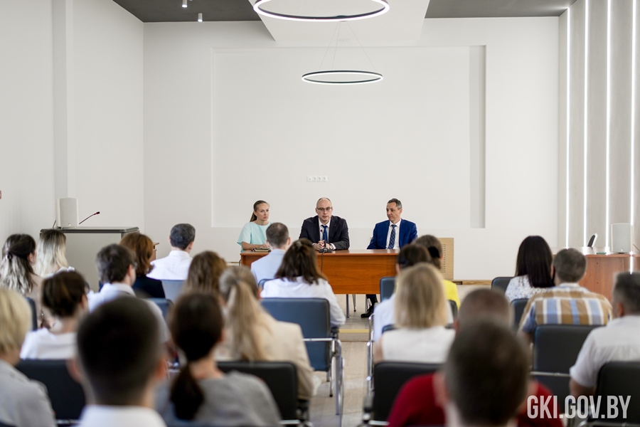 Председатель Государственного комитета по имуществу Дмитрий Матусевич представил трудовым коллективам Национального кадастрового агентства и Центра повышения квалификации руководящих работников и специалистов системы Госкомимущества новых руководителей.