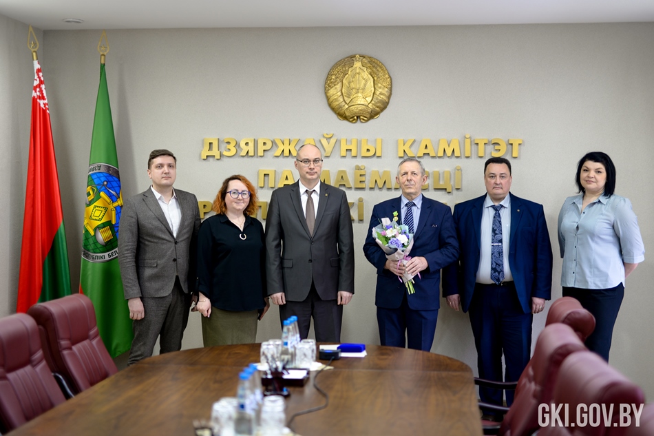Сегодня Председатель Госкомимущества Дмитрий Матусевич вручил нагрудный знак отличия Государственного комитета по имуществу Республики Беларусь «За добрасумленную працу ў сiстэме дзяржмаёмасцi» Александру Коробко – бывшему первому заместителю председателя комитета землеустройства Мингорисполкома.
