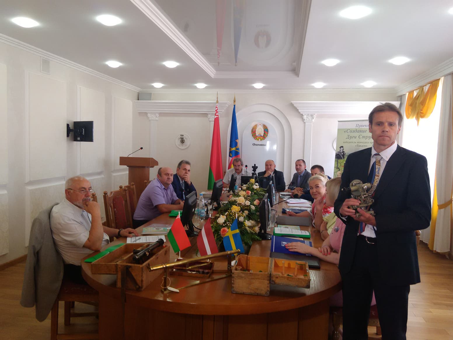 Сегодня в дар Музею Дуги Струве, расположенному в аг. Гольшаны, представителем Департамента геодезической инфраструктуры Национальной администрации Швеции по картографии, кадастру и регистрации «Lantmäteriet» Даном Норином были переданы четыре старинных геодезических прибора, с помощью которых в начале ХХ века производились триангуляционные измерения. Заместитель Председателя Госкомимущества вручил послу Швеции и докладчикам конференции памятные альбомы с выпущенной в прошлом году совместно с РУП «Белпочта» маркой, посвященной 200-летию с начала работ на Дуге и конвертом первого дня гашения.