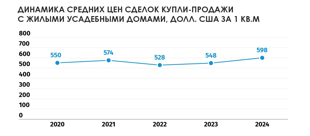 Средняя цена варьировалась в диапазоне от 528 до 598 долларов США в эквиваленте за квадратный метр. К 2024 году ее значение выросло на 9% относительно 2023 года.