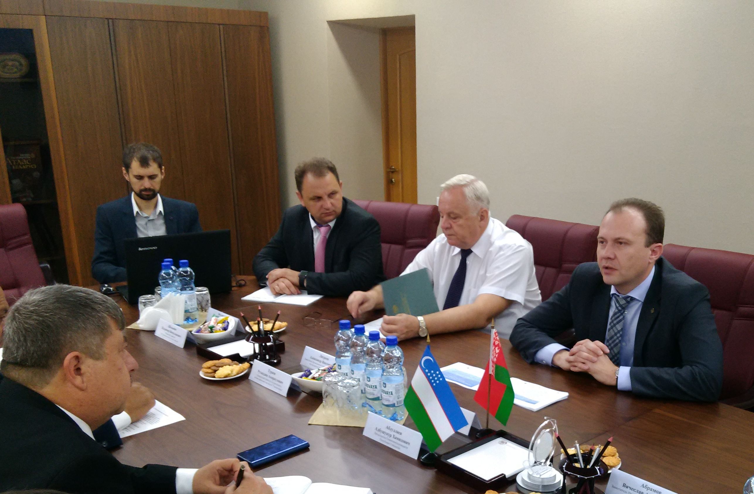 Визит делегации Государственного комитета Республики Узбекистан по земельным ресурсам, геодезии, картографии и государственному кадастру, в состав которой также вошли генеральный директор Государственного научно-проектного института «Уздаверлойиха» Рухиддин Тураев и главный специалист отдела Международных отношений Азизжон Алиев, организован с учетом заинтересованности в установлении межведомственного взаимодействия и обсуждения перспективных направлений сотрудничества белорусского и узбекистанского комитетов.