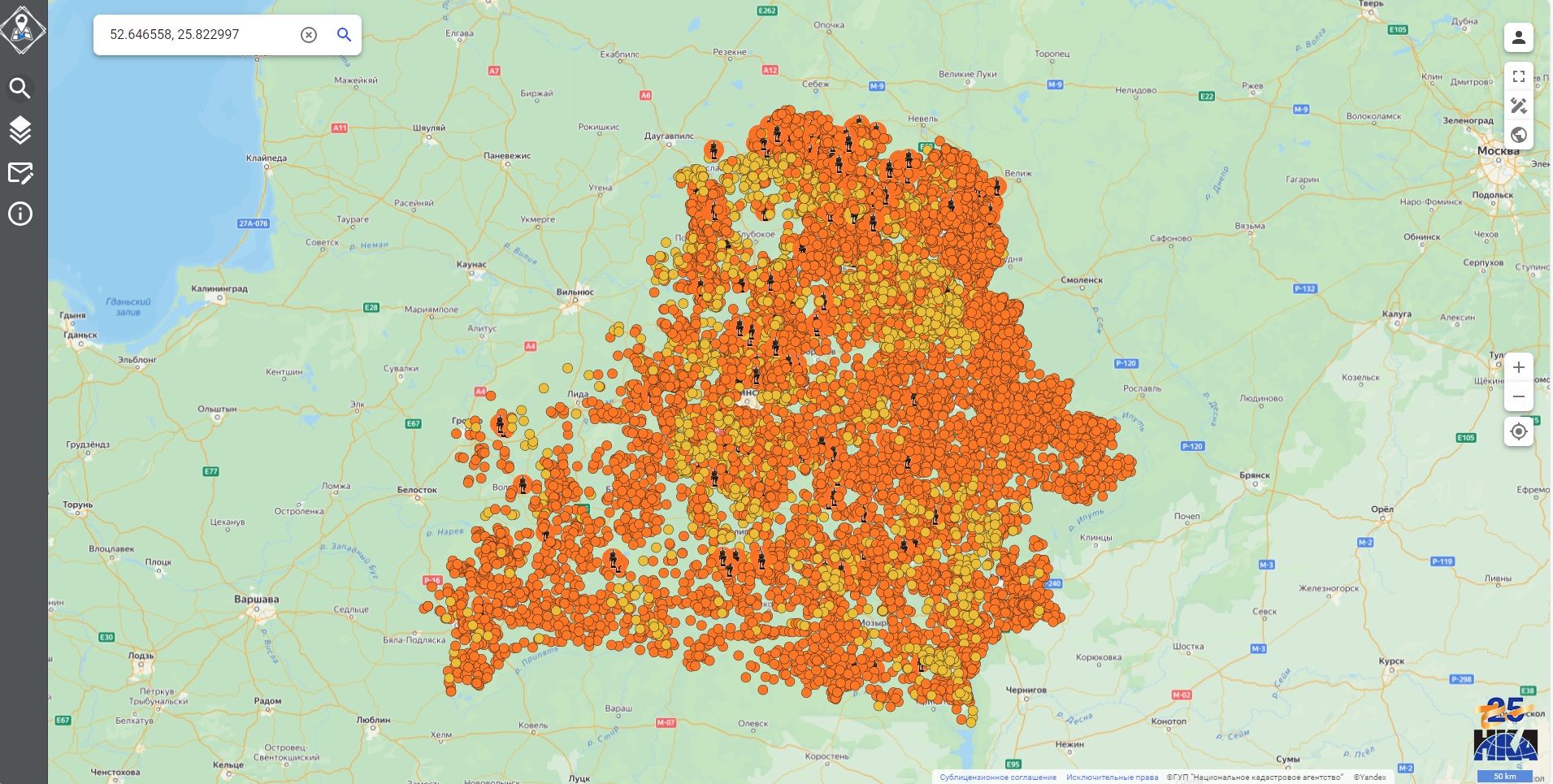 Национальным кадастровым агентством совместно с Генеральной прокуратурой Республики Беларусь обновлен слой «Сожженные деревни» на публичной кадастровой карте. По результатам работ в слой добавлены данные о 2405 населенных пунктах.
