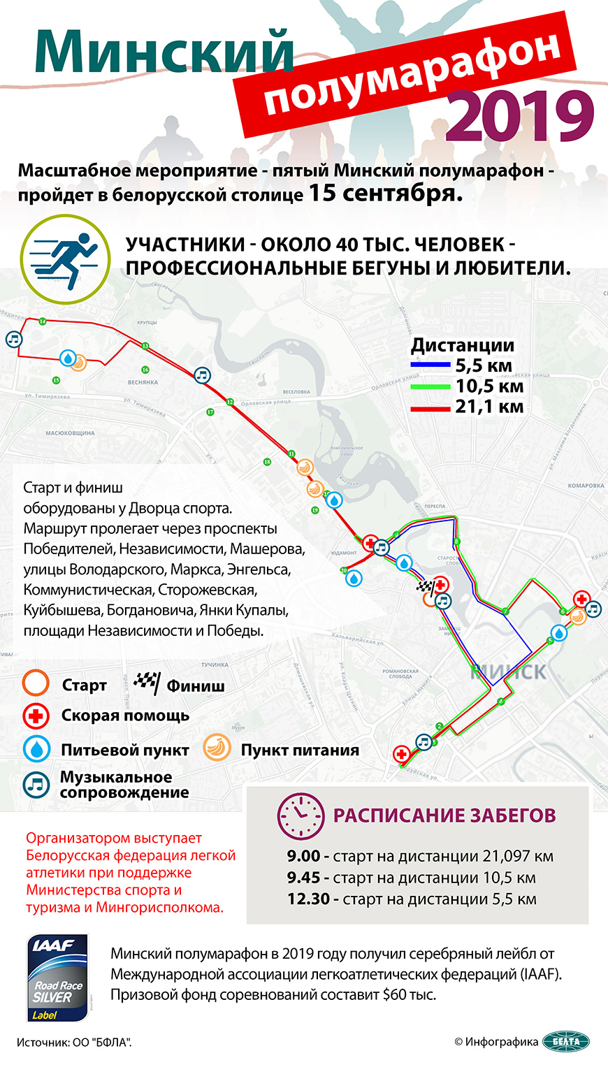 Подробнее о Минском полумарафоне на официальном сайте мероприятия, а также в представленной ниже инфографике БЕЛТА.