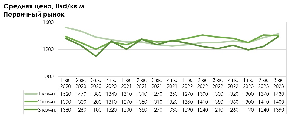 Всего за третий квартал 2023 года было продано 226,6 тысяч квадратных метров квартир, денежный оборот от продажи которых составил 308 миллионов долларов США в эквиваленте, что сопоставимо с прошлым кварталом, и на 10% больше, чем за аналогичный период прошлого года.