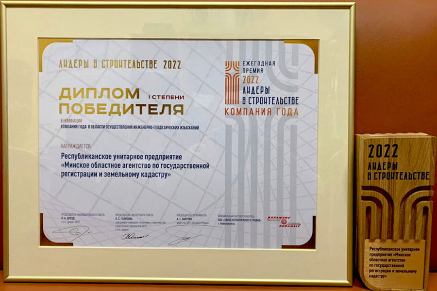 Минское областное агентство по госрегистрации и земельному кадастру – победитель конкурса «Лидеры в строительстве – 2022»