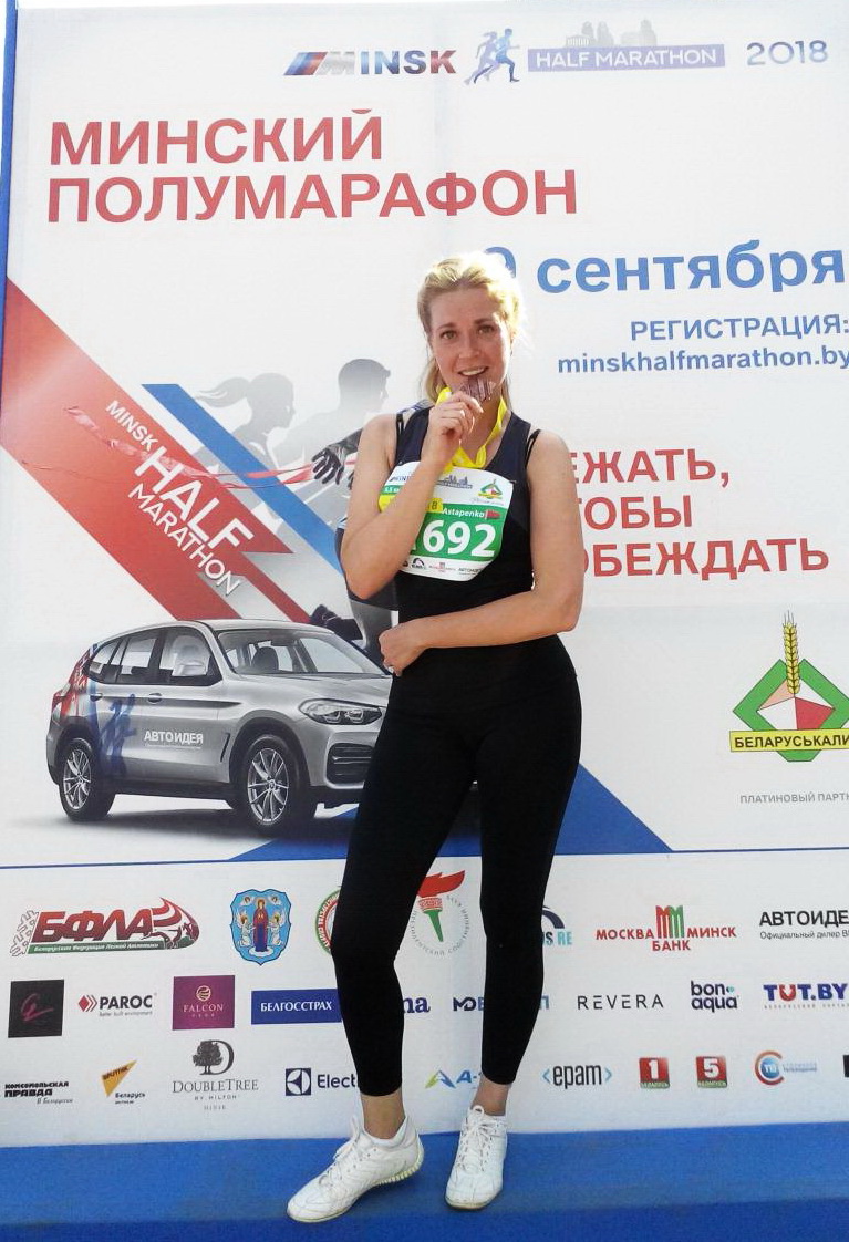 В итоге, со временем 1 час 33 минуты 41 секунда, Наталья стала первой в своей возрастной категории и 13-ой в абсолютном женском зачёте Минского полумарафона 2018. К тому же, среди белорусок она стала 5-ой, уступив только таким профессиональным спортсменам, как Светлана Куделич (2-ое место в абсолюте), Нина Савина (4-ое место в абсолюте), Ольга Мазуренок (5-ое место в абсолюте) и Надежда Скардино (11-ое место в абсолюте). За 1-ое место в своей возрастной категории Наталья Малиновская награждена организаторами призовым хрустальным диском.