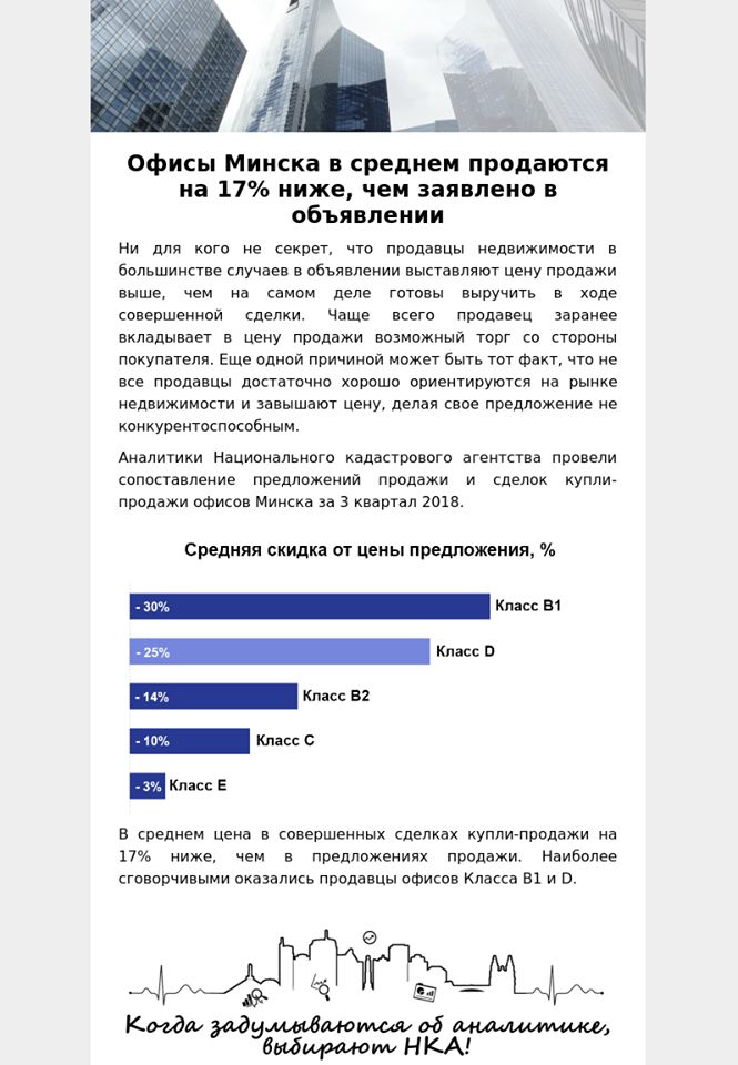 Офисы Минска продают на 17% дешевле, чем заявлено в объявлении о продаже