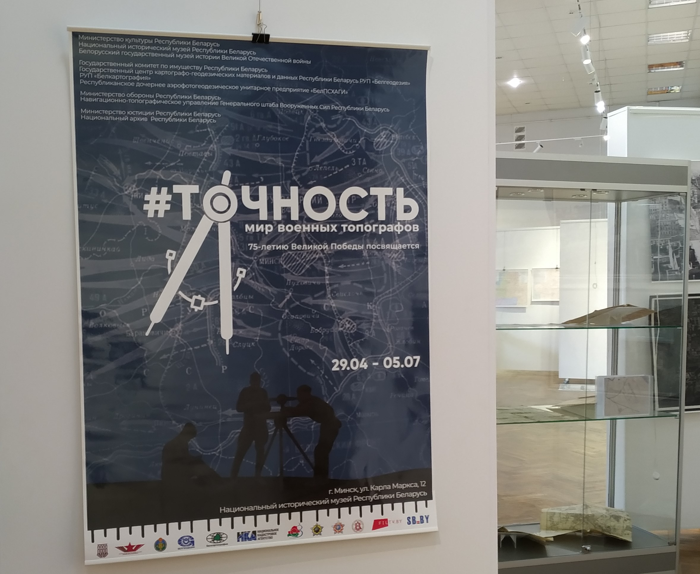 В преддверии 75-летия Великой Победы, при непосредственном участии ГП «Белгеодезия» в Национальном историческом музее Республики Беларусь в эти дни проходит уникальный выставочный проект «#ТОЧНОСТЬ. Мир военных топографов» (#точность_мир_военных_топографов), организованный совместно с Государственным комитетом по имуществу Республики Беларусь и навигационно-топографическим управлением Генерального штаба Вооруженных Сил Республики Беларусь.