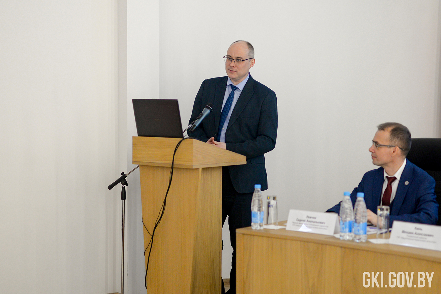 Приветствуя собравшихся, Председатель Госкомимущества Дмитрий Матусевич отметил, что в 2023 году агентством проведена большая результативная работа по переводу административных процедур в сфере государственной регистрации недвижимого имущества в электронный вид.