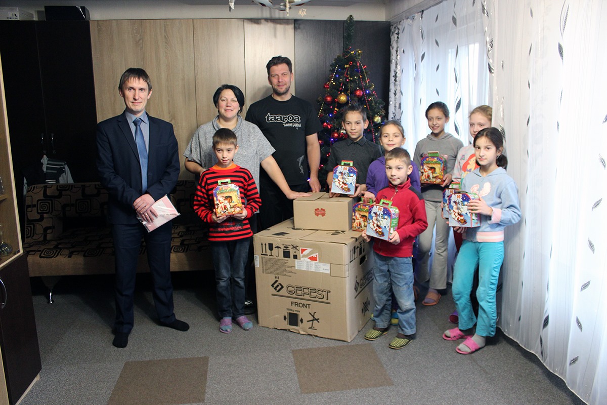 И в этот раз заместитель директора Андрей Атрошкин вновь передал теплые поздравления от сотрудников с наступающим 2020 годом и Рождеством, пожелал ребятам успехов в учёбе, хорошего настроения и всего самого доброго в новом году, а также вручил новогодние подарки.