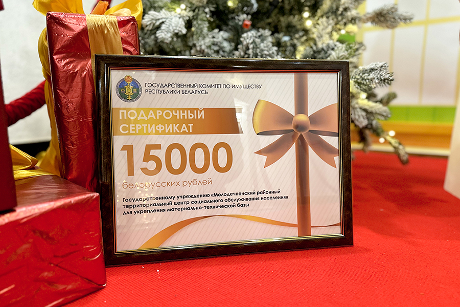 Председатель Госкомимущества также стал участником Рождественского бала, где еще раз поздравил коллектив и посетителей отделения дневного пребывания с новогодними праздниками, а также вручил директору центра Дмитрию Гончару сертификат на Br15 тыс.