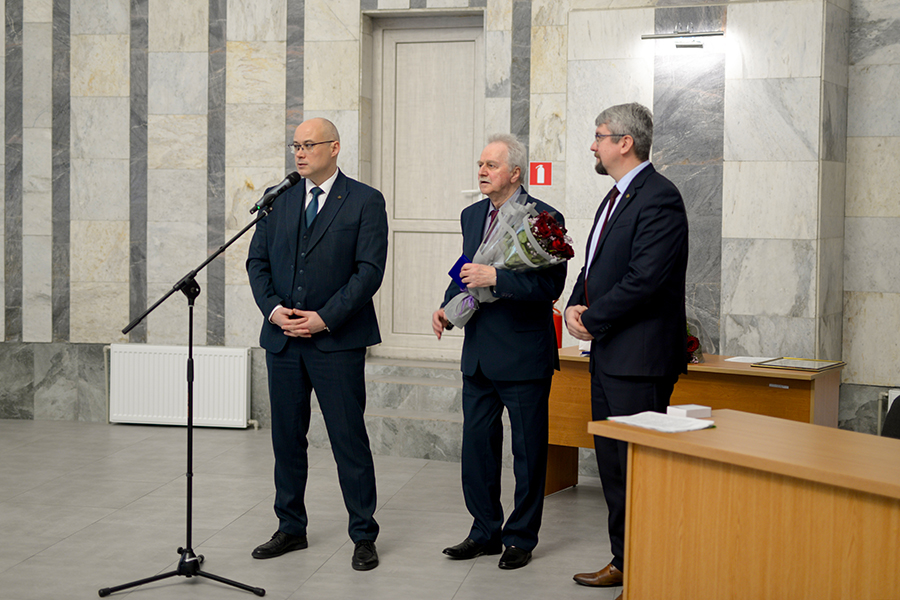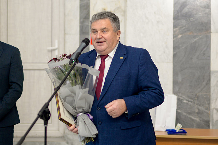 В рамках встречи также состоялось награждение работников предприятия. Так, ведущий инженер по качеству отдела контроля качества (в прошлом – директор предприятия) Владимир Хрусталев удостоен нагрудного знака отличия Государственного комитета по имуществу Республики Беларусь «За добрасумленную працу ў сiстэме дзяржмаёмасцi». В свою очередь ведущий специалист отдела правовой и организационно-кадровой работы Федор Левша был награжден Почетной грамотой Государственного комитета по имуществу за плодотворный труд и значительный вклад в популяризацию геодезической и картографической деятельности.
