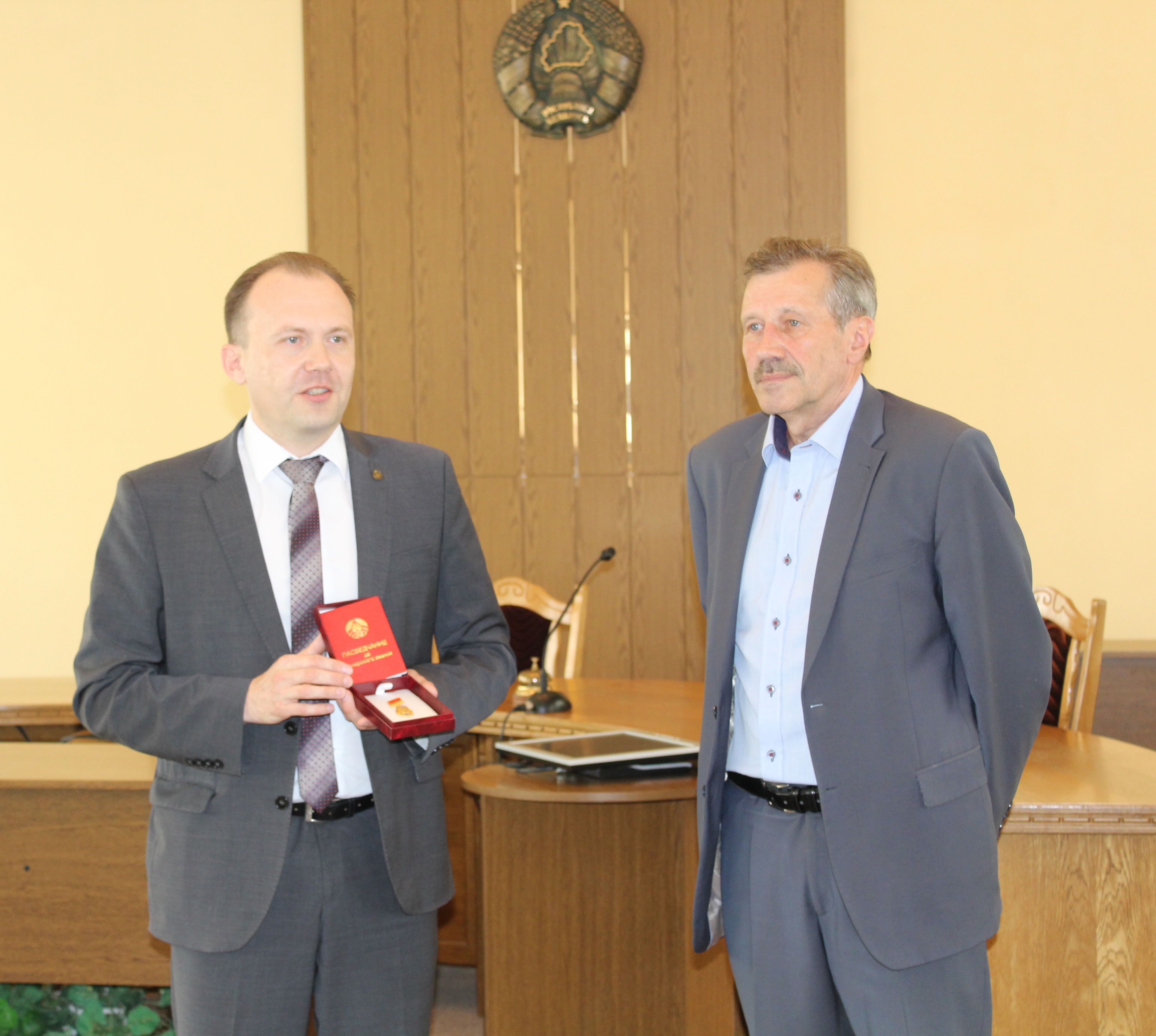 Поздравляя с присуждением почетного звания «Заслуженный строитель Республики Беларусь» и вручая нагрудный знак, руководитель Госкомимущества подчеркнул высокие профессиональные и человеческие качества его обладателя.