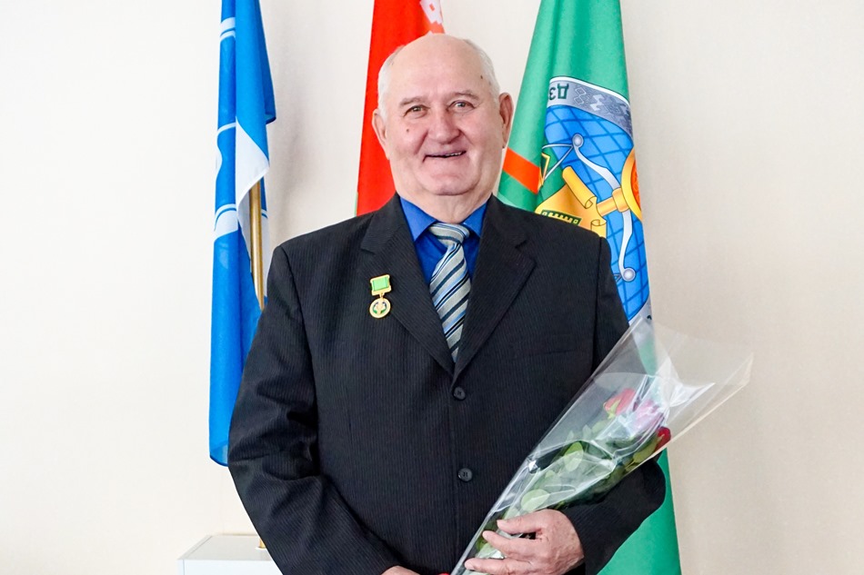 Также глава ведомства вручил нагрудный знак отличия Государственного комитета по имуществу Республики Беларусь «За добрасумленную працу ў сiстэме дзяржмаёмасцi» Ивану Елисеенко – бывшему начальнику производственного отдела землеустроительных и геодезических работ Брестского филиала института «Белгипрозем».