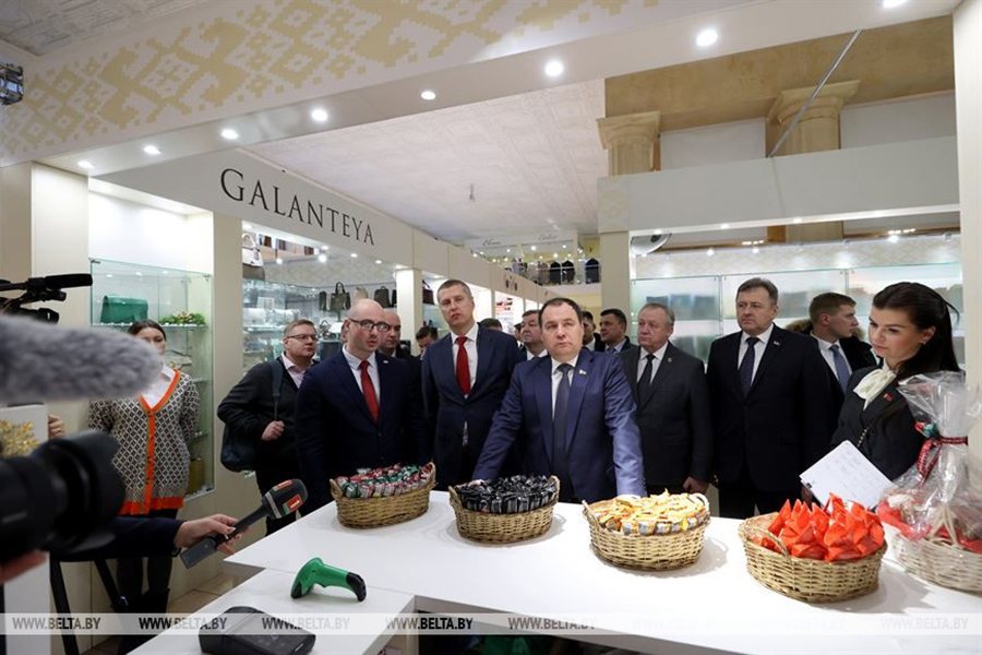 Заглянул Роман Головченко и в несколько торговых павильонов, где представлена белорусская потребительская продукция. В настоящее время под постоянно действующую выставку-ярмарку белорусских товаров занято свыше 1 тыс. кв.м, из них 90% отдано под продукцию легкой промышленности, на остальных площадях разместились предприятия пищепрома. В павильоне осуществляется торговля продукцией около 110 белорусских предприятий. Премьер-министр поинтересовался, какие группы белорусских товаров пользуются наибольшим спросом у посетителей ВДНХ. Так, первое место по выручке занимает продовольствие, второе – обувь, третье – косметика и товары легкой промышленности.