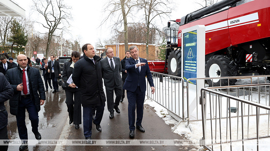 В завершение посещения павильона Республики Беларусь Роман Головченко осмотрел выставку белорусской техники, развернутой на открытой площадке. Здесь представлены карьерный самосвал БЕЛАЗ-7558 грузоподъемностью 90 т, зерноуборочный комбайн производства «Гомсельмаш» с жаткой для уборки кукурузы на зерно, трактор BELARUS-622, универсальный погрузчик с бортовым поворотом «АМКОДОР-211» и легковой автомобиль марки «Белджи».