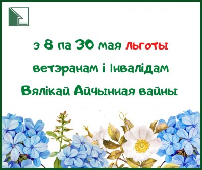 При обращении в любое подразделение агентства в обозначенный период ветераны и инвалиды Великой Отечественной войны будут полностью освобождены от оплаты работ (услуг), выполняемых РУП «Минское областное агентство по государственной регистрации и земельному кадастру» (за исключением осуществления административных процедур), при предъявлении документа, подтверждающего статус ветерана или инвалида Великой Отечественной войны.