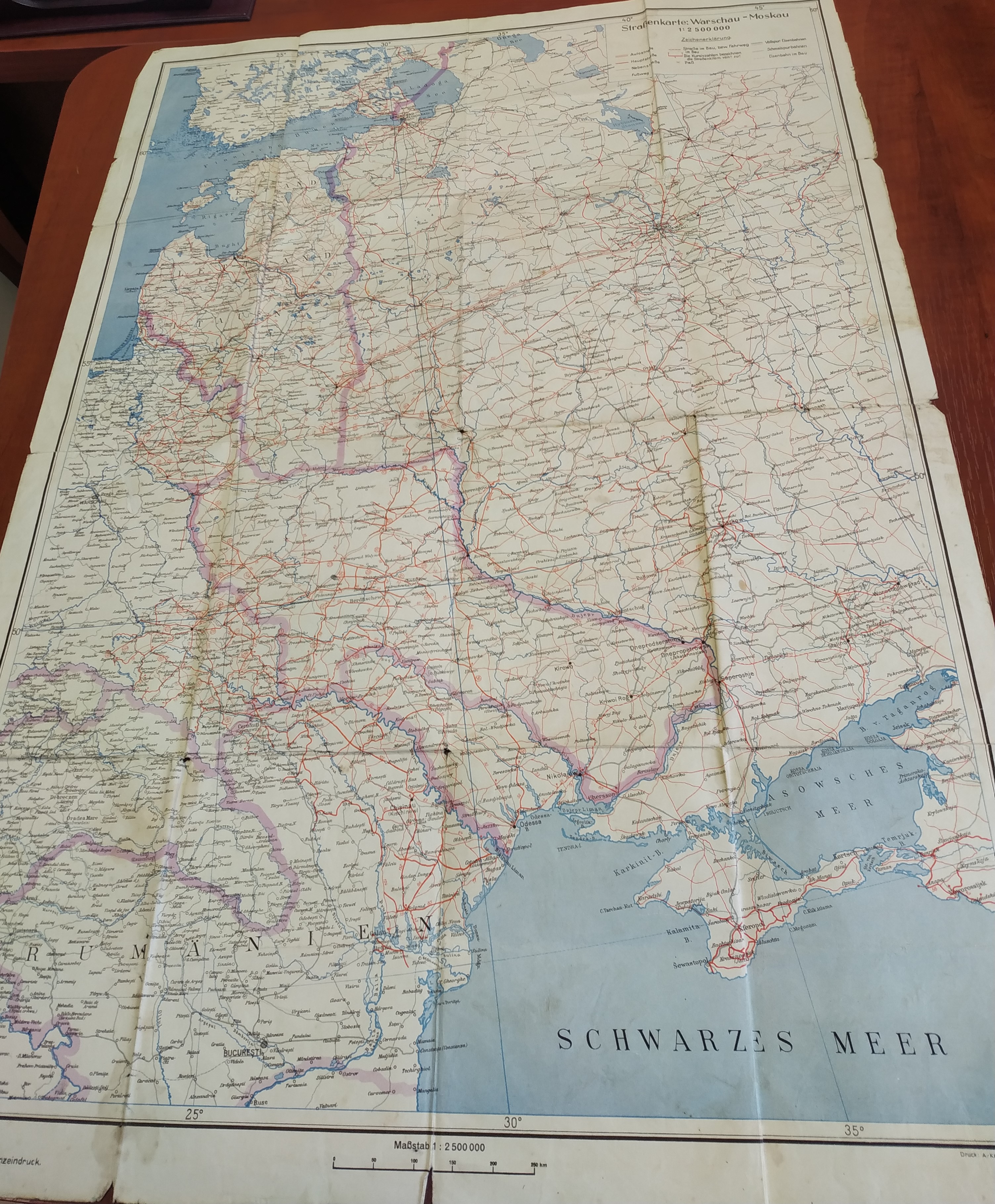 На оборотной стороне карты есть интересная историческая пометка, свидетельствующая о том, что в 1942 году она попадала в руки к врагам.