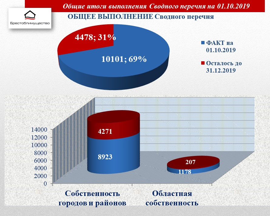 Отмечено, что в области проведена большая работа в части методологии и предприняты серьезные меры по выполнению задачи. С августа 2017 года было зарегистрировано более 10 тысяч строений, общий план до конца года – 69,3%. Брестская область до 1 октября занимала лидирующую позицию, затем она переместилась на вторую строку после Минской .