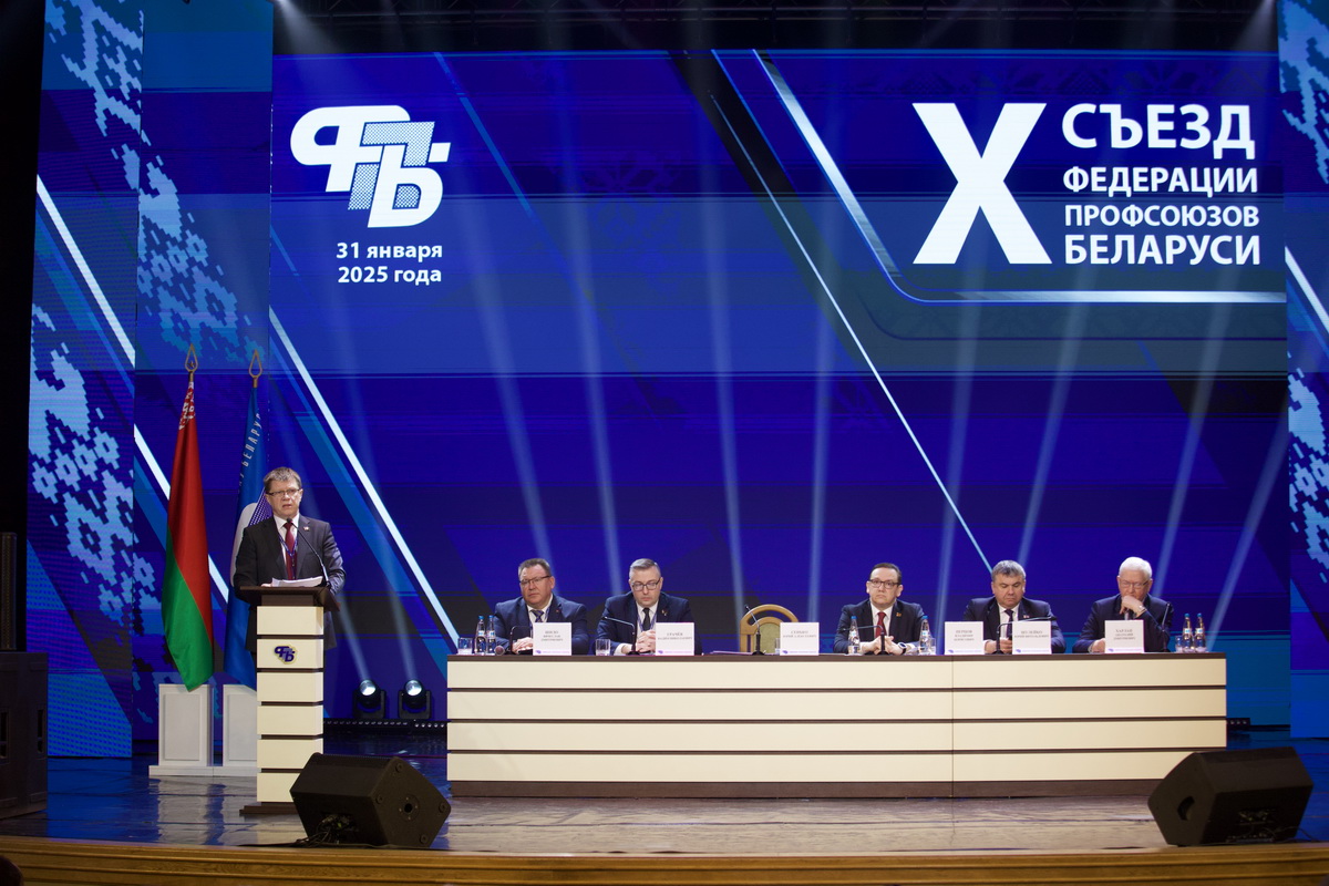 В ходе съезда председатель ФПБ Юрий Сенько обозначил задачи, которые самой массовой общественной организации предстоит решать в предстоящей пятилетке. Лидер национального профцентра подчеркнул, что белорусский народ сделал выбор в пользу мира, стабильности и социальной справедливости, избрав главой государства Александра Лукашенко. Напомнил о целях и задачах, поставленных Президентом.