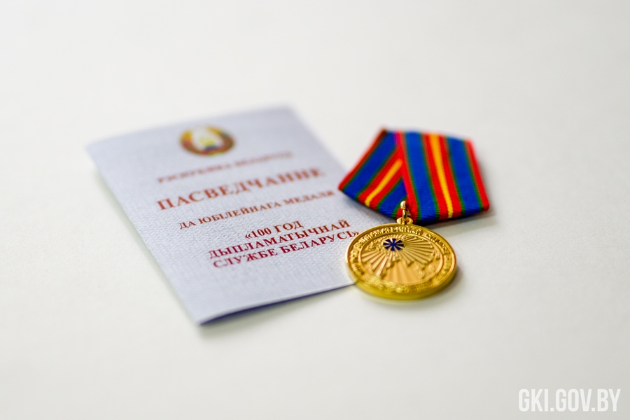 Юбилейная медаль, посвященная 100-летию белорусской дипломатической службы, была вручена Послом по особым поручениям Министерства иностранных дел Республики Беларусь Игорем Милидовичем.
