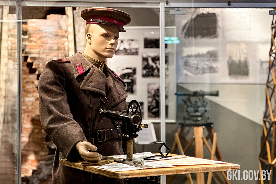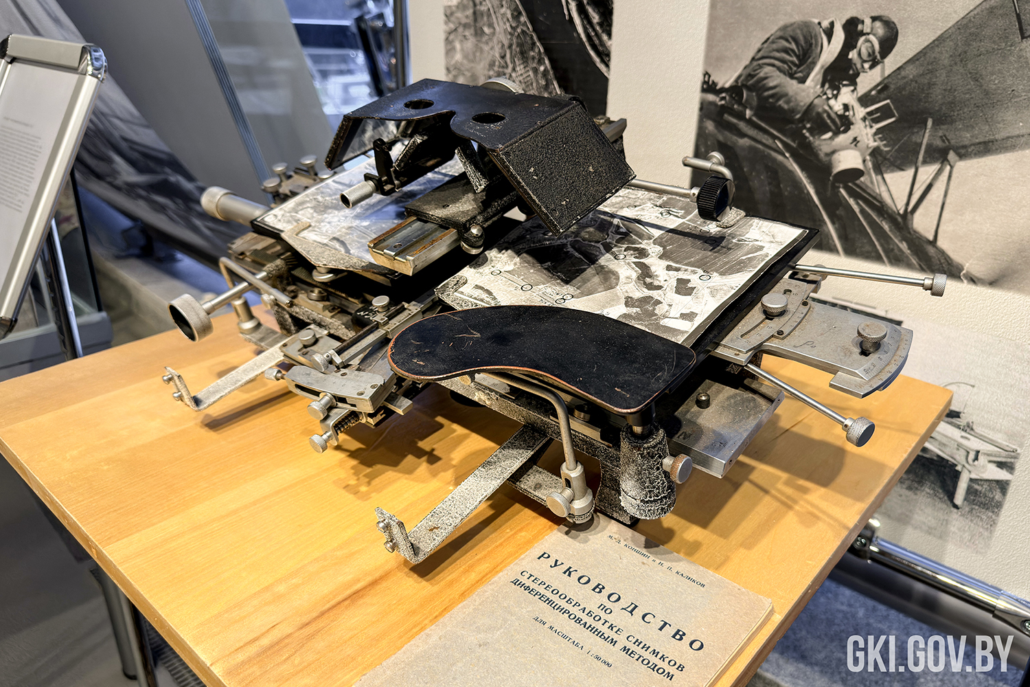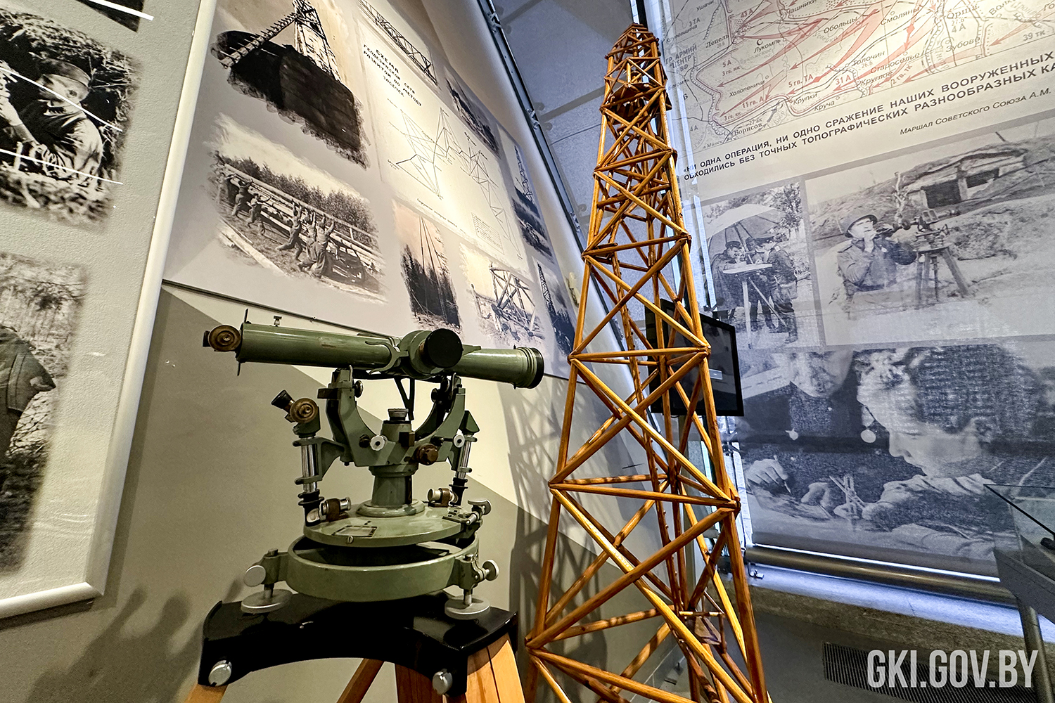 В основе экспозиции – геодезические, фотограмметрические, картографические приборы и инструменты, десятки оригинальных карт, книг и брошюр довоенных и военных годов издания, используемых в период Великой Отечественной войны при проведении специальных работ.