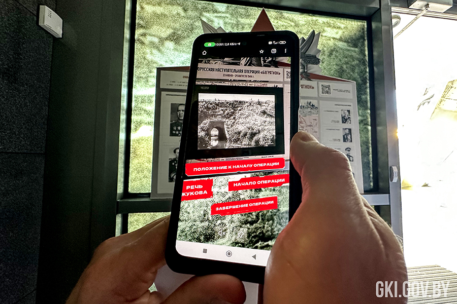 Технология дополненной реальности экспозиции позволяет ознакомиться с кинохроникой событий периода Великой Отечественной войны и операции «Багратион», провести визуальное сравнение современного картографического изображения окрестностей Воложина с его изображением на довоенной карте польского издания, а также услышать рассказы от первого лица ветеранов Белгеодезии – непосредственных участников боевых действий, выполнявших задачи по топогеодезическому обеспечению войск на фронте.