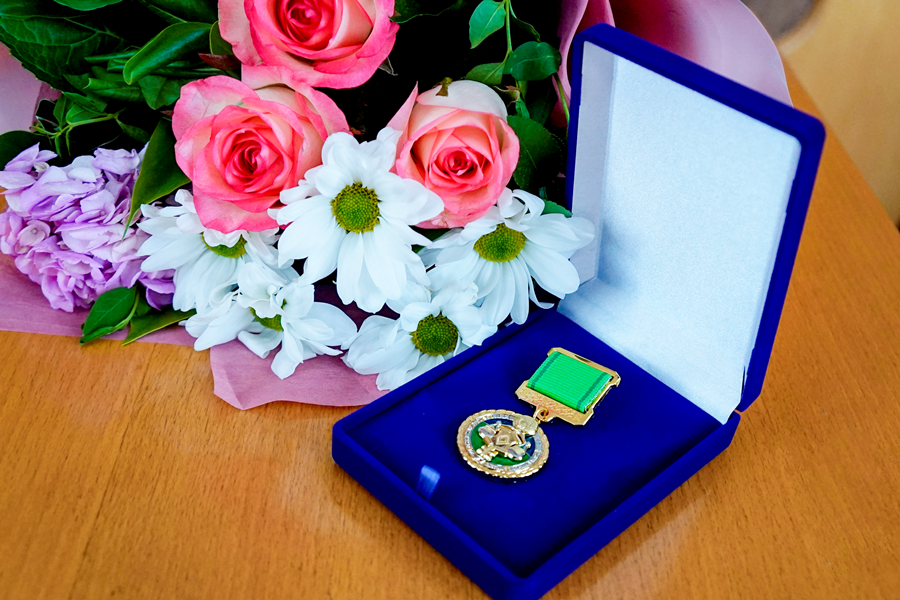 У завяршэнні рабочай паездкі старшыня Дзяржкаммаёмасці наведаў Магілёўскае агенцтва па дзяржаўнай рэгістрацыі і зямельным кадастры, дзе ўручыў нагрудны знак адрознення Дзяржаўнага камітэта па маёмасці Рэспублікі Беларусь «За добрасумленную працу ў сістэме дзяржмаёмасці» Жане Панамарэнка – былому галоўнаму спецыялісту землеўпарадкавальнай і геадэзічнай службы г.Магілёва.