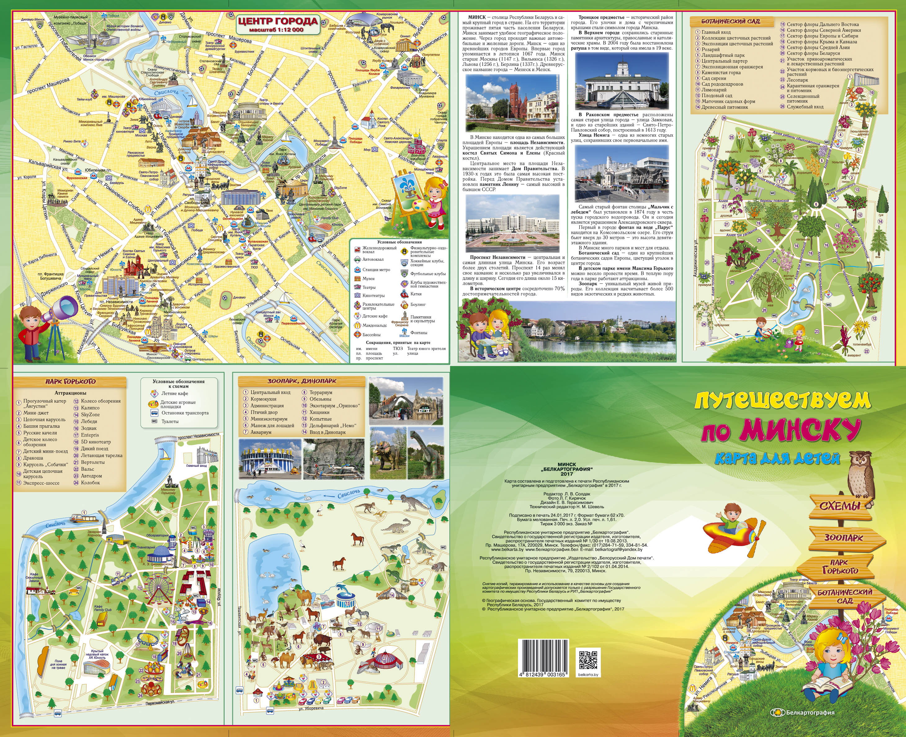 Детскую тематику дополнила складная карта «Путешествуем по Минску». На ней в доступной форме представлена информация об исторических и культурных достопримечательностях Минска,  объектах отдыха и развлечения столицы.