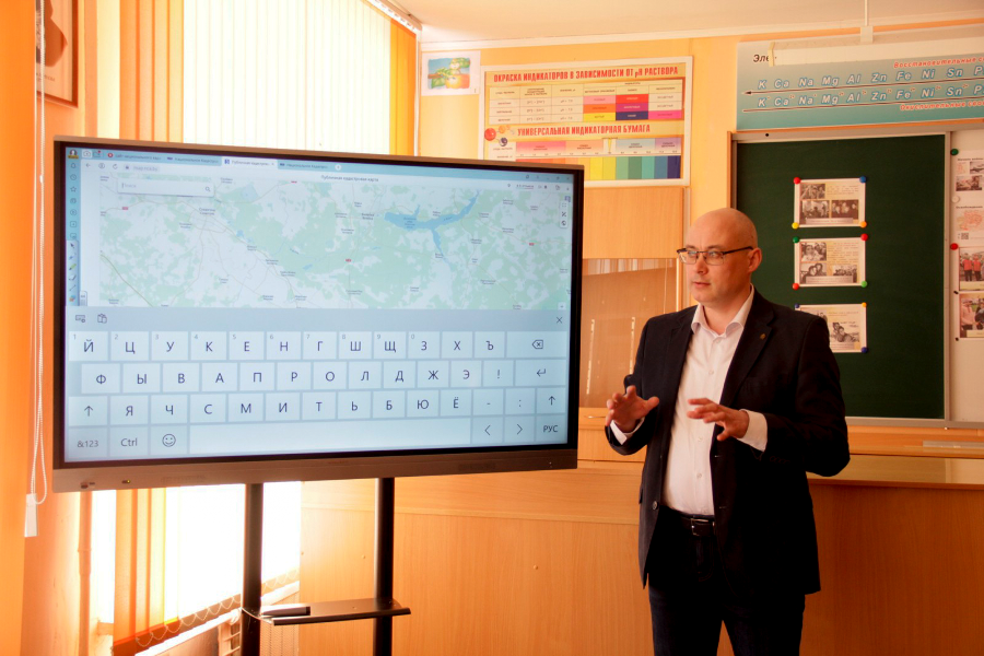 Кроме того, Председатель Госкомимущества продемонстрировал учащимся тематические слои публичной кадастровой карты Беларуси: памятники Великой Отечественной войны, сожженные деревни, элементы улично-дорожной сети, названные в честь героев войны и участников партизанского движения.