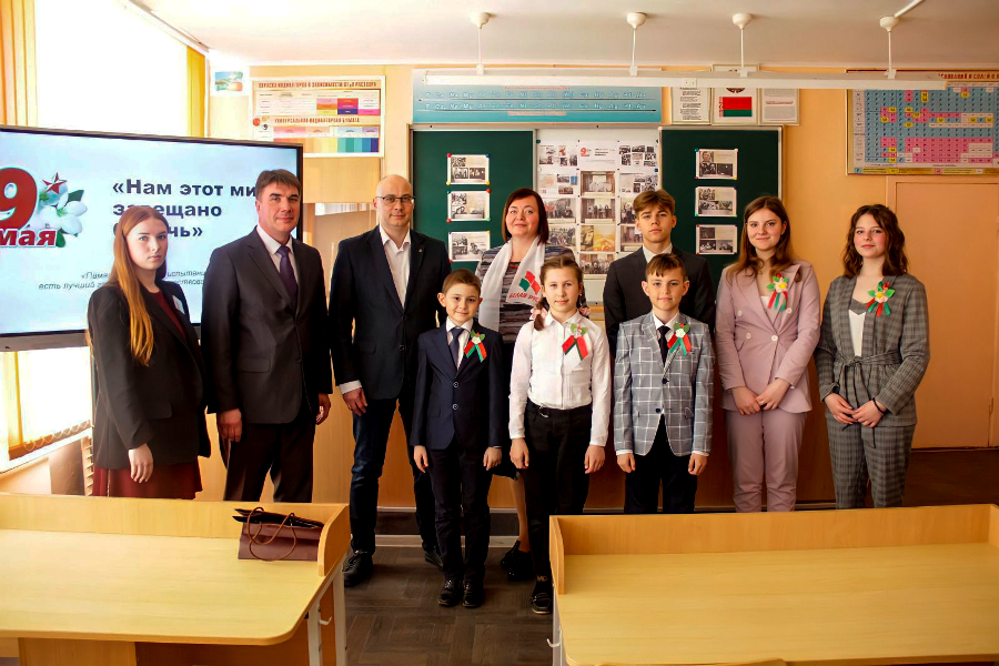 Председатель Государственного комитета по имуществу Дмитрий Матусевич посетил урок памяти в средней школе №9 г.Молодечно, посвященный 77-летию Победы советского народа в Великой Отечественной войне.
