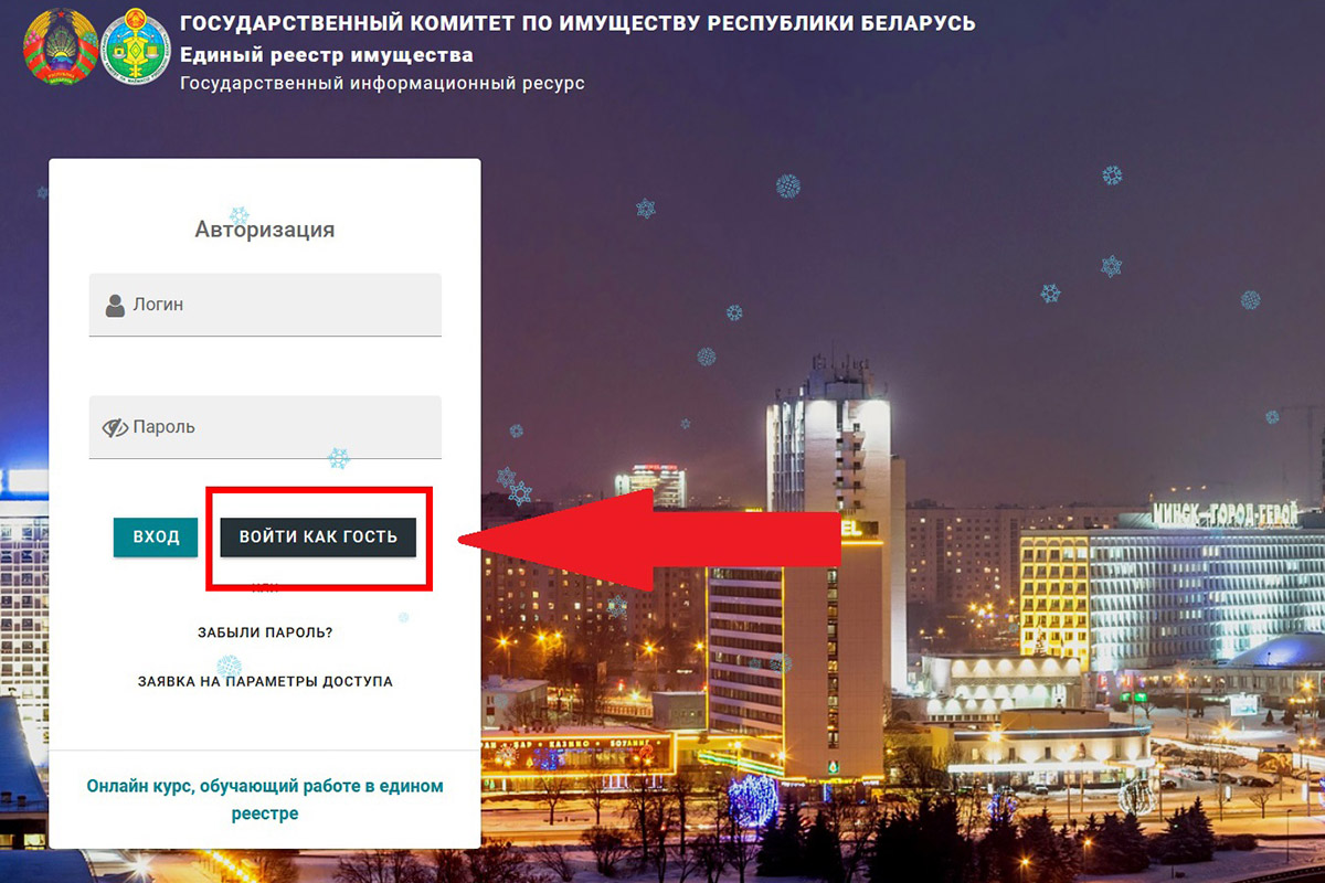 eri2.nca.by. Необходимо выбрать вкладку «Войти как гость», ввести в фильтр нужные вам критерии для поиска и посмотреть статус дома, его характеристики и стоимость, если он продается. На данный момент в реестре значатся 160 пустующих домов, выставленных на продажу. Практически по каждому объекту есть сопутствующая информация: год постройки (дата ввода в эксплуатацию), площадь строения, материал стен, степень износа, наличие дополнительных строений на участке, также есть фото некоторых объектов.