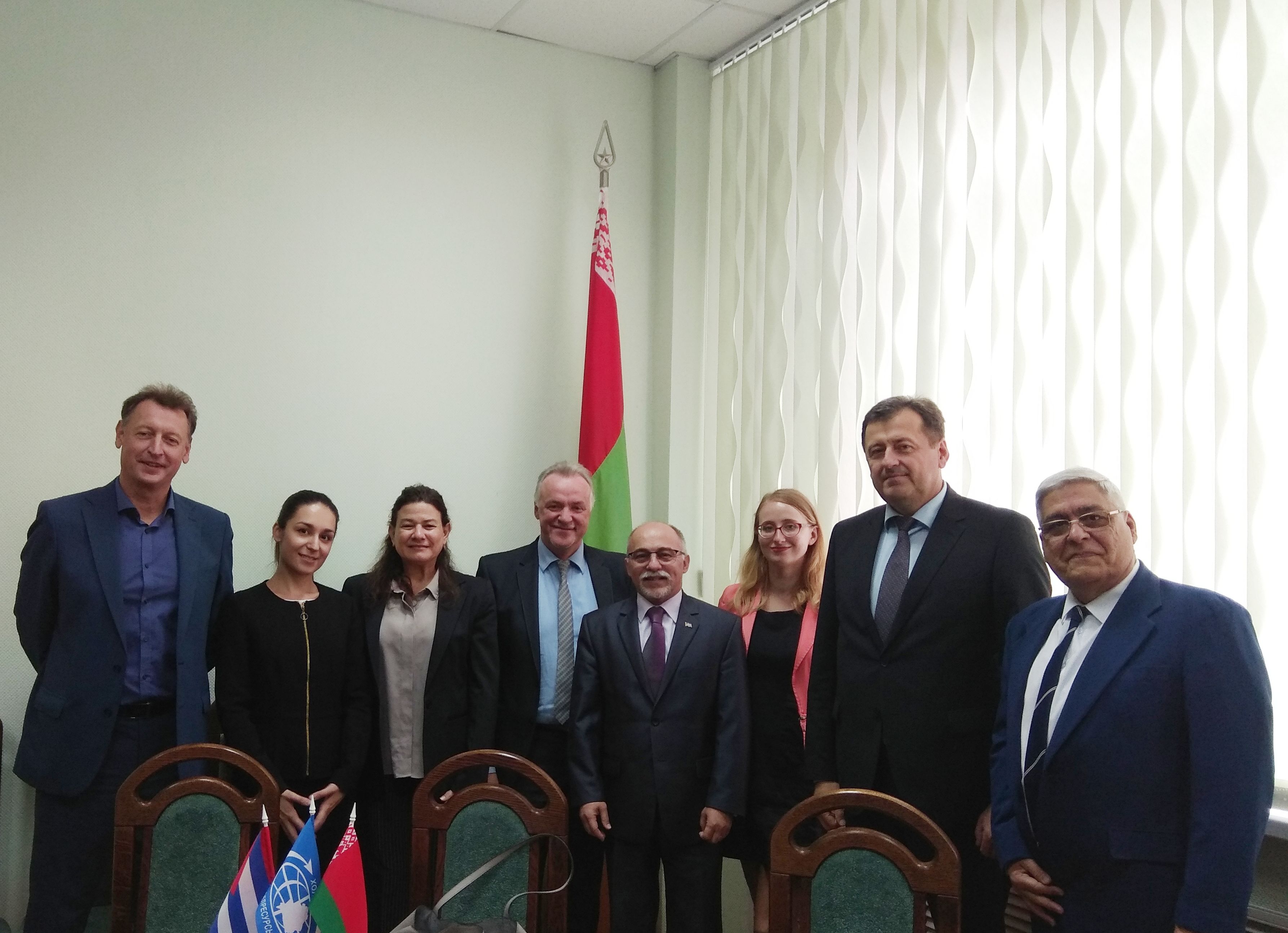 Встреча в управляющей компании ГО «Белресурсы» проходит с участием Чрезвычайного и Полномочного Посла Республики Куба в Республике Беларусь Херардо Суарес Альвареса, Советника Посольства Куба в Республике Беларусь Сатурнино Хуан де ла Грана Энрикеса и регионального бизнес-менеджера Центра молекулярной иммунологии Республики Куба Ньювиса Переса.