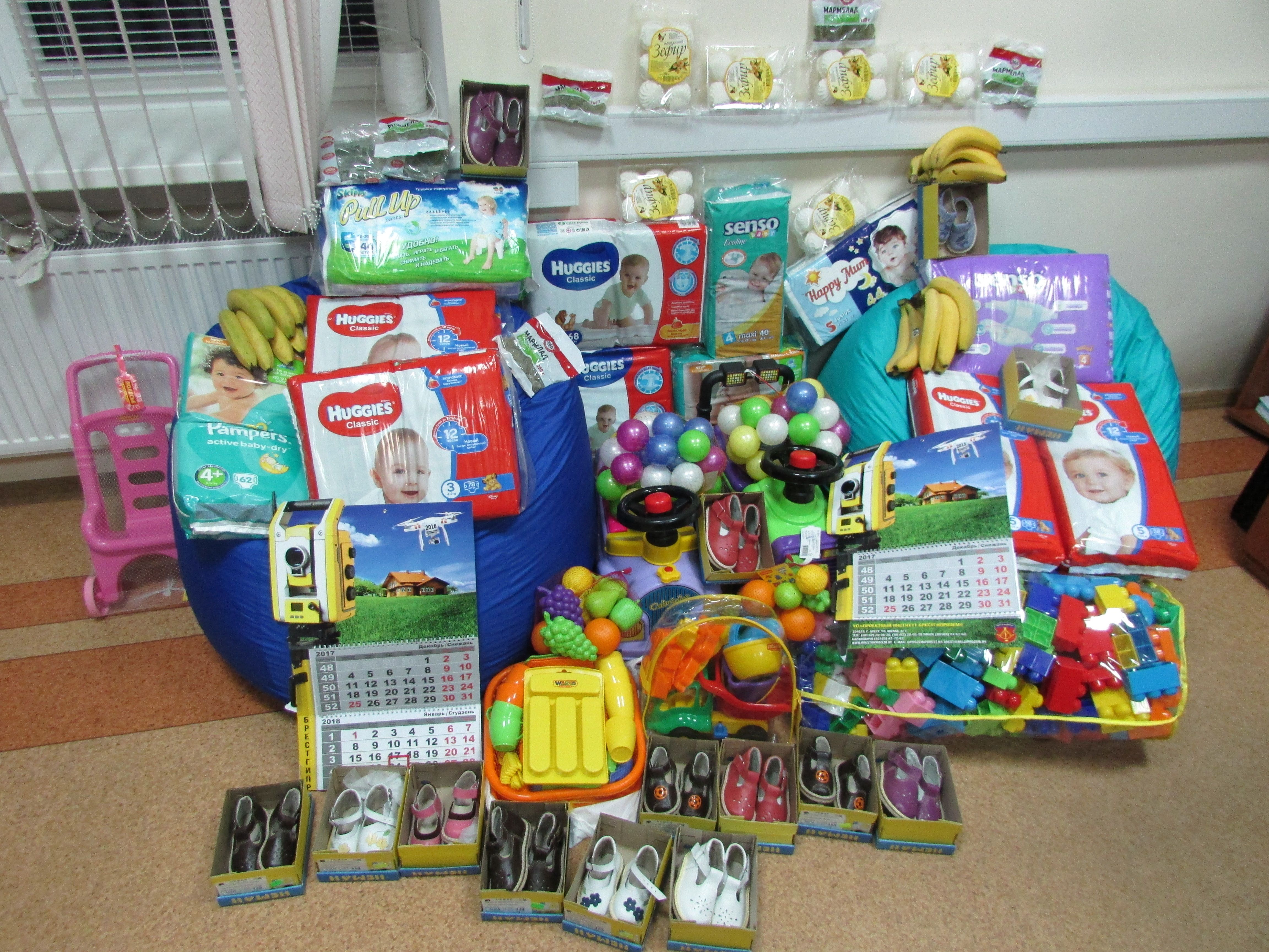 На предприятии организовали сбор средств и закупили подарки. Вчера все было доставлено малышам: фрукты и сладости, обувь, развивающие игрушки, предметы санитарно-гигиентического назначения и другие вещи, которые порадуют малышей и будут подспорьем в работе воспитателей.