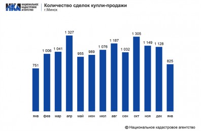 «По данным Реестра цен на земельные участки государственного земельного кадастра, в январе в Минске было зарегистрировано 825 сделок купли-продажи (без учета долей и комнат), что на 27% меньше, чем в декабре 2019-го, когда было заключено 1 128 сделок», – рассказали в агентстве.