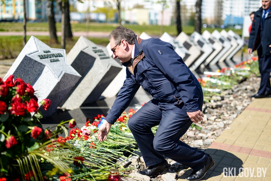 В преддверии Дня Победы представители Государственного комитета по имуществу во главе с Председателем Дмитрием Матусевичем приняли участие в церемонии возложения цветов к мемориалу «Память».