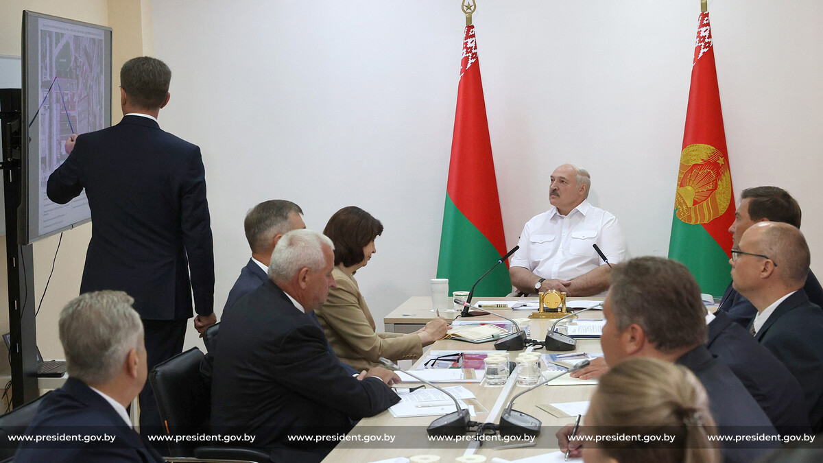 Президент Беларуси Александр Лукашенко во время пребывания на площадке комплексной реконструкции застройки ООО «Минский городской технопарк» собрал совещание о завершении строительства проблемных объектов в Минске. В мероприятии принял участие и Председатель Государственного комитета по имуществу Дмитрий Матусевич.