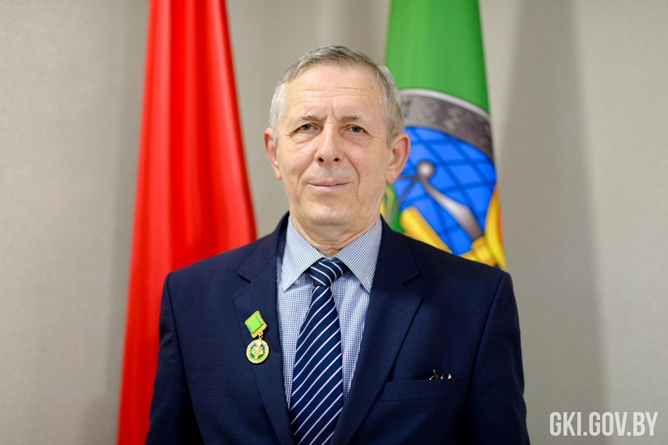 Сегодня Председатель Госкомимущества Дмитрий Матусевич вручил нагрудный знак отличия Государственного комитета по имуществу Республики Беларусь «За добрасумленную працу ў сiстэме дзяржмаёмасцi» Александру Коробко – бывшему первому заместителю председателя комитета землеустройства Мингорисполкома.