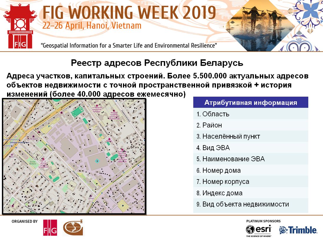 Также он рассказал о том, что представляют собой реестр характеристик Республики Беларусь и реестр Адресов Республики Беларусь, подчеркнув при этом, что пространственные данные об адресах являются основой интеграции государственных информационных ресурсов.