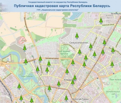 В преддверии новогодних  праздников Национальное кадастровое агентство Госкомимущества  нанесло на Публичную кадастровую карту Республики Беларусь временный слой – адреса 237 елочных базаров  белорусской  столицы, где с 22 по 31 декабря  2017 года можно будет купить натуральную ель.