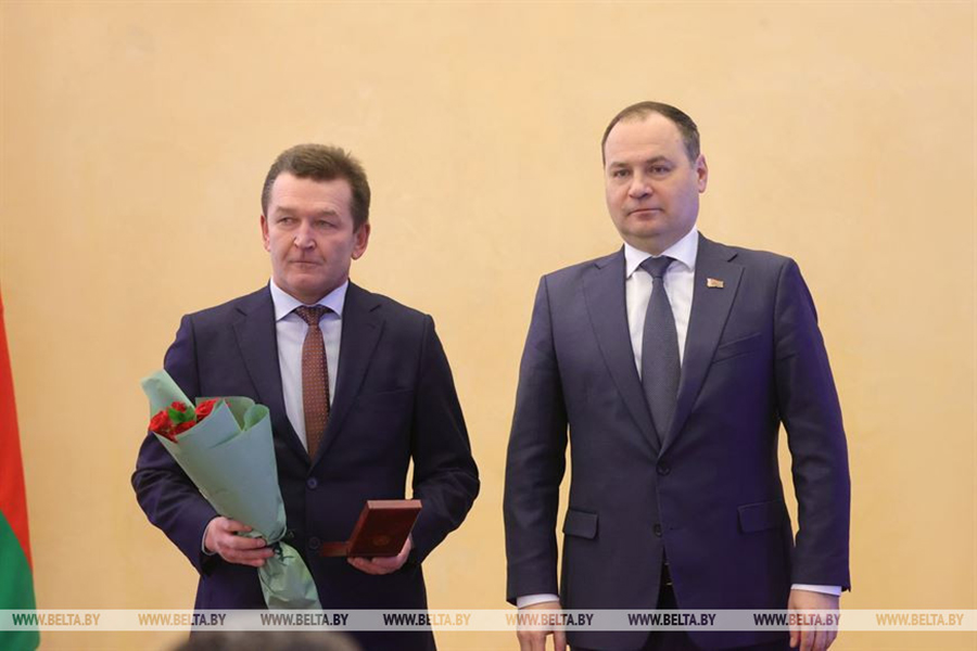 Накануне Премьер-министр Роман Головченко вручил государственные награды представителям различных сфер. Медалью «За трудовые заслуги» был отмечен и генеральный директор ОАО «Мостострой» холдинга «Белавтодор» Сергей Вашкевич.