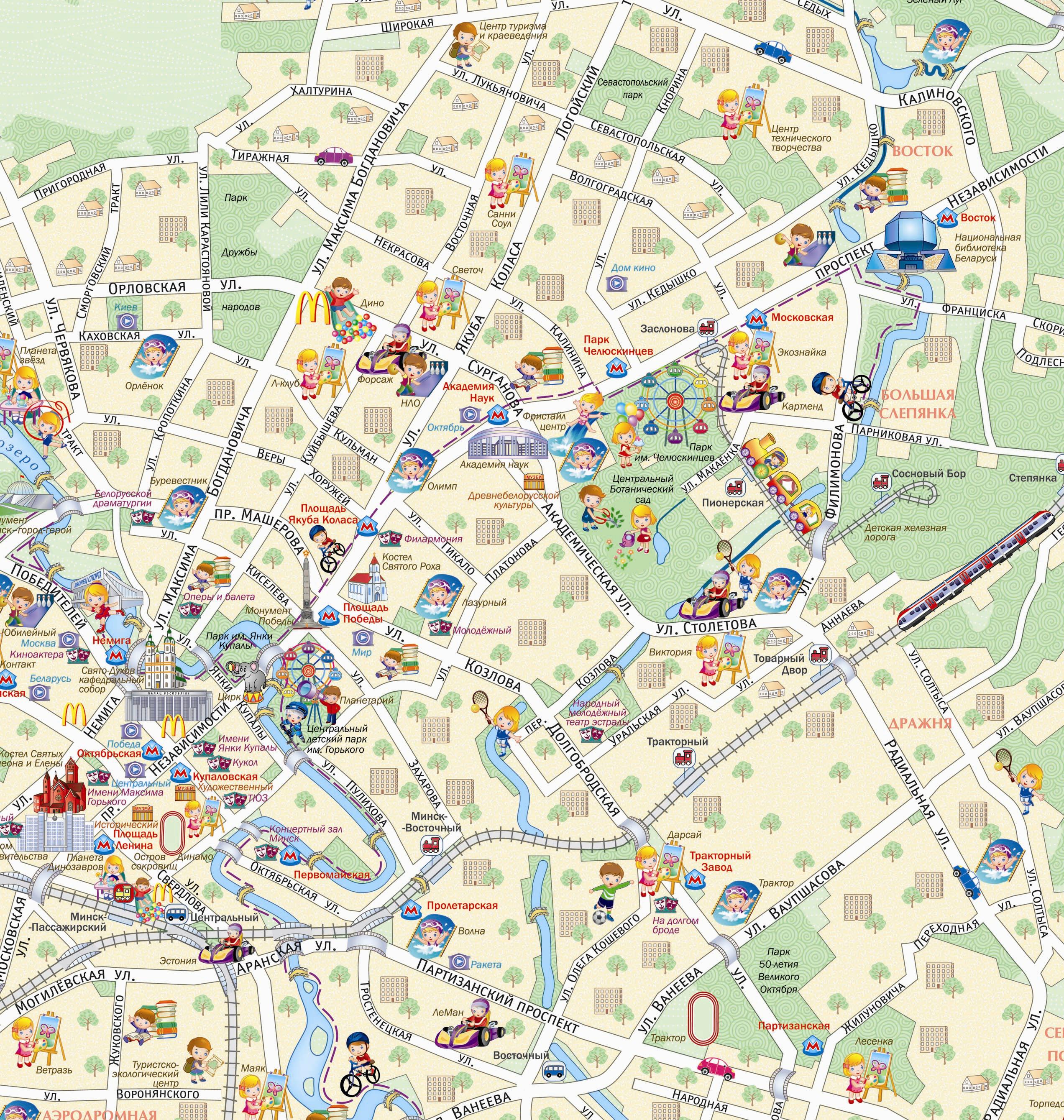 «Минск. Карта для детей» дает общее представление о городе в целом, объектах, связанных с достопримечательностями, досугом, развивает пространственную ориентацию. Учитывая возрастную категорию, предъявлялись повышенные требования к дизайну: цветовая гамма, шрифты, условные обозначения и т. д. Работы над картой шли в тесном сотрудничестве редактора Л. В. Солдак и дизайнера Е. В. Герасимович