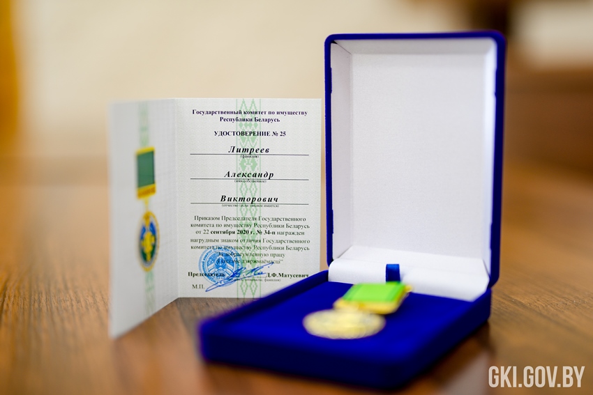 Помимо этого, Александр Литреев был награжден нагрудным знаком отличия Государственного комитета по имуществу Республики Беларусь «За добрасумленную працу ў сiстэме дзяржмаёмасцi», а Алексей Васильев отмечен благодарностью Председателя комитета.