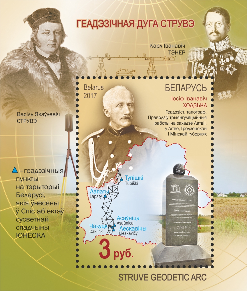 почтовый блок и конверт Первого дня, посвященные Геодезической дуге Струве подготовлен РУП «Белпочта» в сотрудничестве с Госкомимуществом.