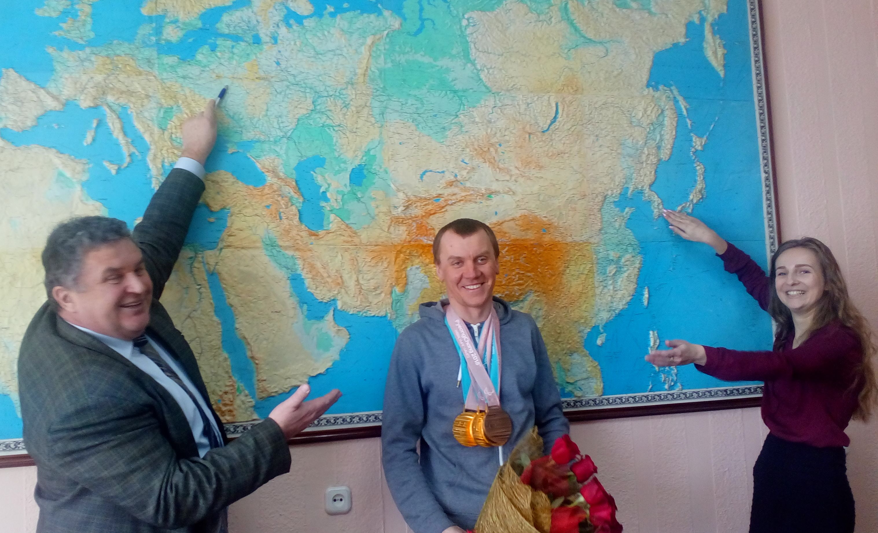 У коллектива государственного предприятия «Белгеодезия» выдался абсолютно необычный трудовой день. Впервые порог предприятия переступил не просто сотрудник, а обладатель трех золотых и одной бронзовой медалей XII зимних Паралимпийских игр в далеком корейском Пхенчхане Роман Ященко – ведущий паралимпийской чемпионки лыжницы Светланы Сахоненко.