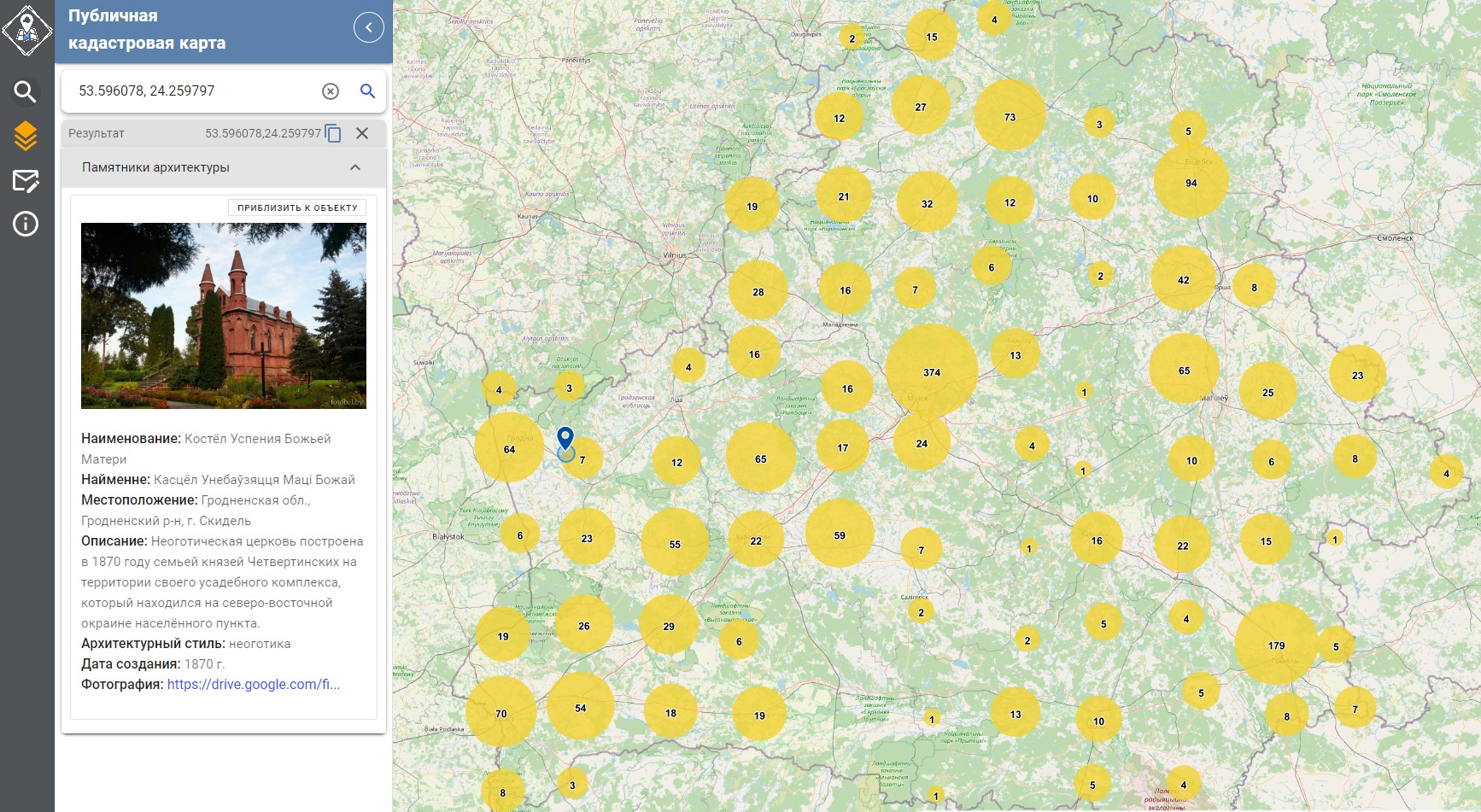 На публичной кадастровой карте Беларуси обновлен слой «Памятники архитектуры»